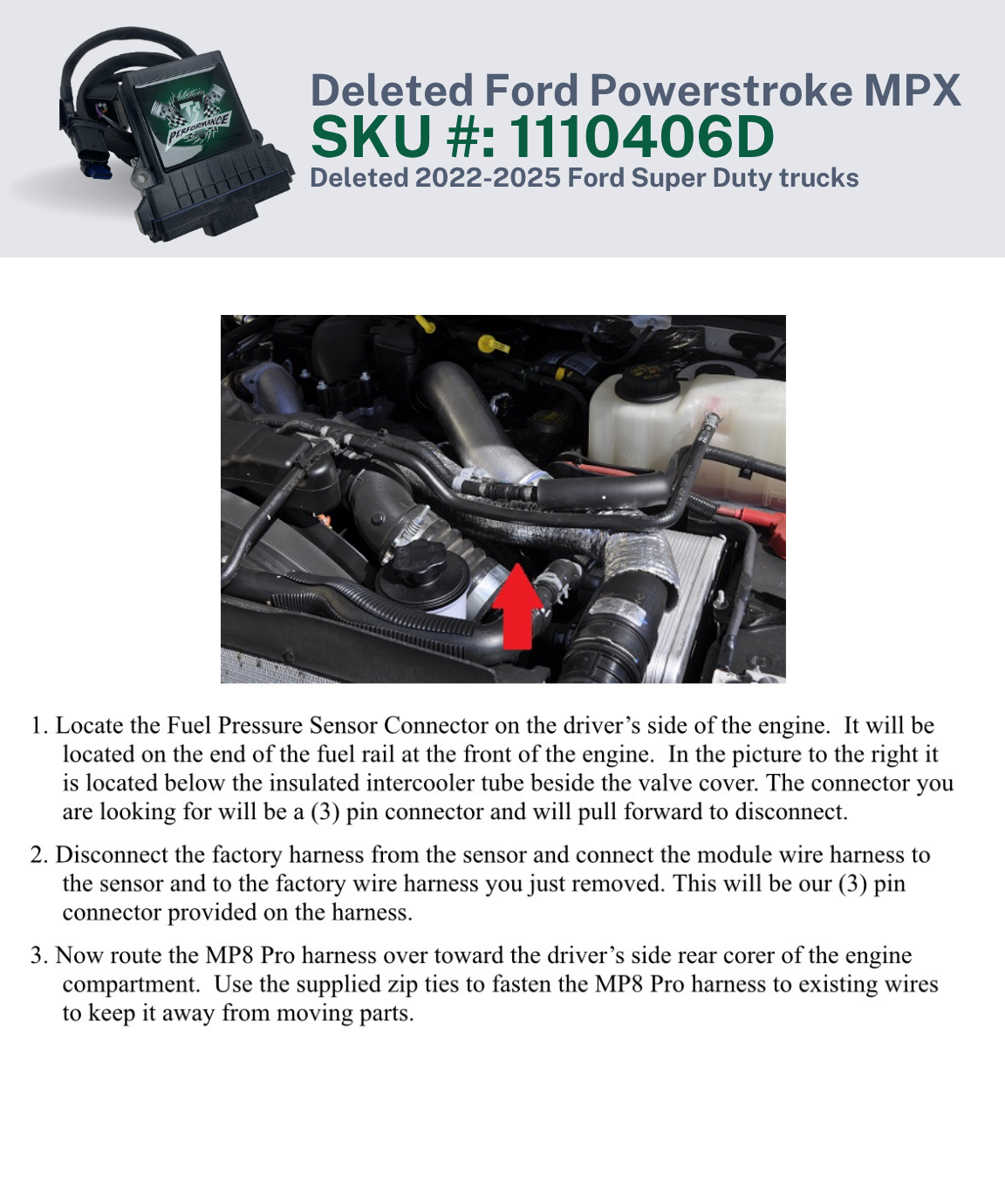 Bring back the power your truck lost. The MPX is a plug-and-play performance module engineered to restore +65 hp & +150 ft/lbs to 2022–2025 Ford Super Duty trucks that have been modified with a stock delete file. Designed to restore fuel mileage up to 2-4 mpg, recover the low-end grunt, midrange pull, and top-end power missing after a delete, MPX uses precision fuel pressure mapping and boost control to return the responsive, usable powerband drivers expect.